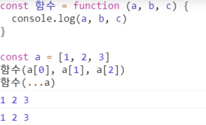 전개 연산자 - 매개변수에 ... 으로 배열을 넣어도 성립된다.