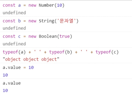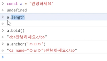 기본 자료형은 속성과 메서드를 추가할 수 없는데, 왼쪽과 같이 쓸 수 있는 이유는 "일시적으로 객체 자료형으로 변환되기 때문"
