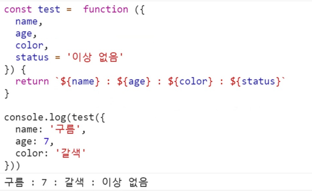 기본값보다는 객체로 더 많이 매개변수로 사용된다.