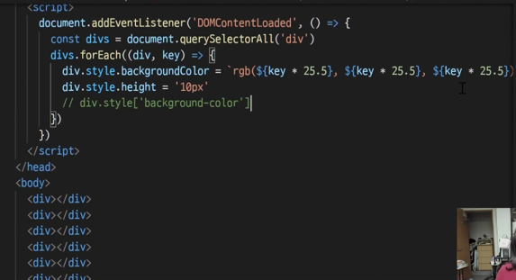 div를 모두 가져오고, 색 지정 , 높이 지정한다.