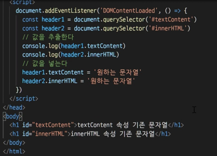 innerHTML은 명령을 수행함.