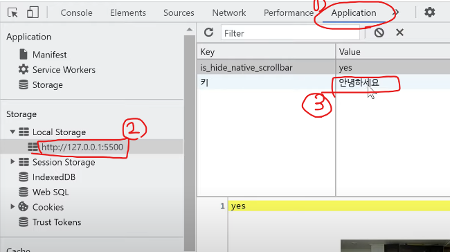 f12 눌러서 application 누르고 주소 누르면 저장된 내용을 볼 수 있다.
