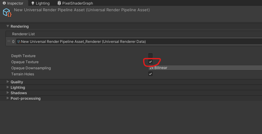 해당 참조값은 URP가 제공하는 카메라가 촬영하는 OpaqueTexture를 가져다 쓸수 있게 해주는 Reference이다.