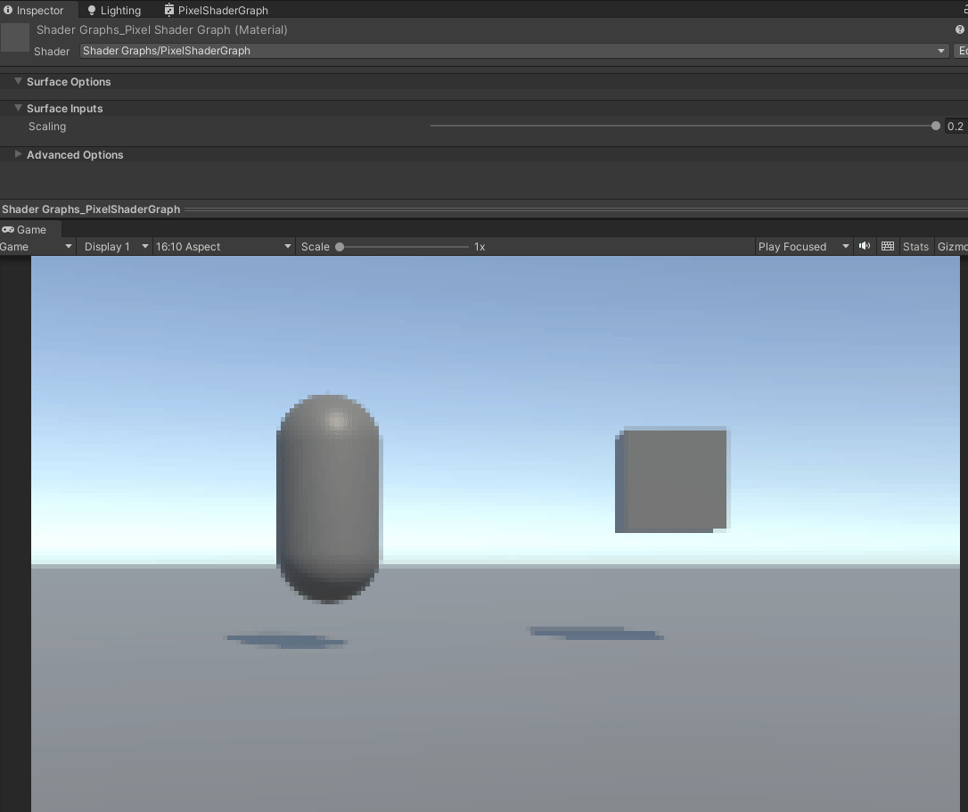 빼왔던 Scaling값을 수정해보면 화면에 모자이크가 들어가는 것을 볼 수 있다.