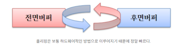 2개의 화면버퍼를 사용해서 A버퍼에 그리고 , B버퍼에 다음 장면을 미리 그려놓고,