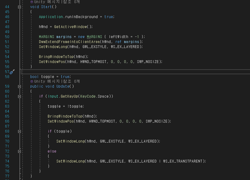 WS_EX_LAYERED는 창을 계층화된 창으로 만든다는 뜻이다.