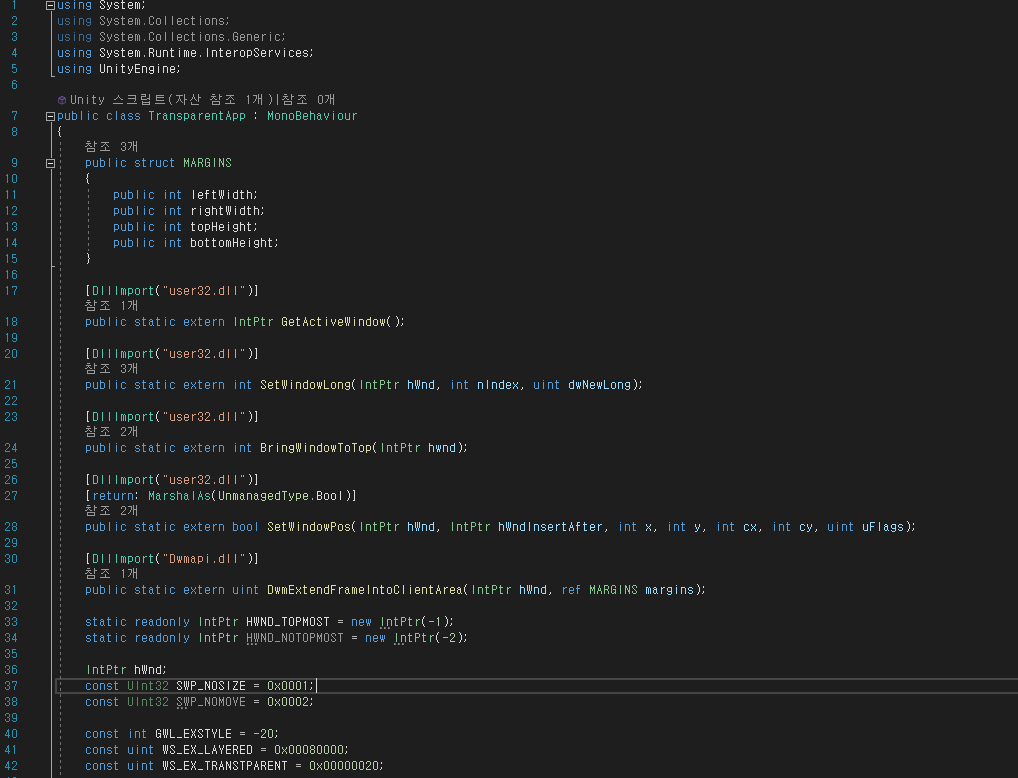 해당 기술은 화면 투명성을 지원하지 않는다.