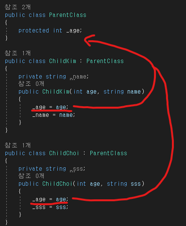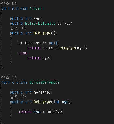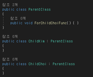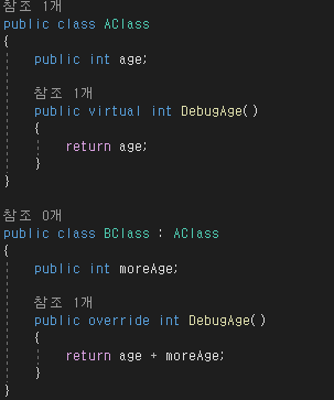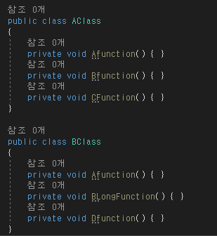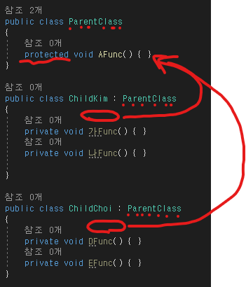 코드를 보면 같은 부모이고 AFunc() 같은 내용의 메소드를 쓰고있다.