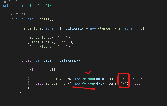외부에서 switch문을 사용했기 때문에 정해진 종류만 뽑아서 사용하도록 하였고