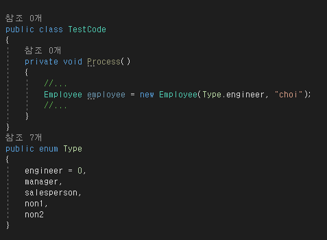 왼쪽은 실행 코드이고, 오른쪽은 리팩터링이 필요한 클래스이다.