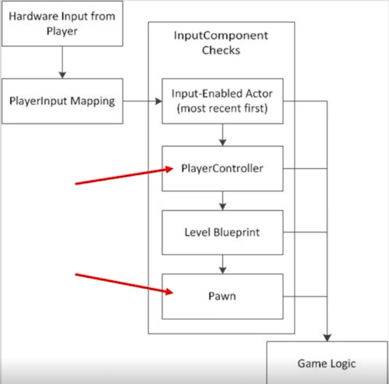 - 빙의(Possess)를 통해 플레이어와 연결됨.