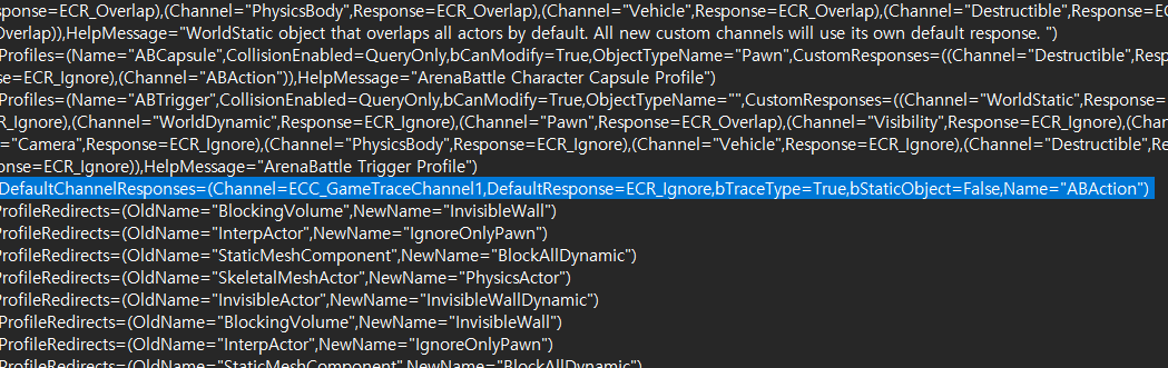 코드에서 이 채널을 사용하기 위해선 ECC_GameTraceChannel1 을 사용하는 것이 더 수월하다.