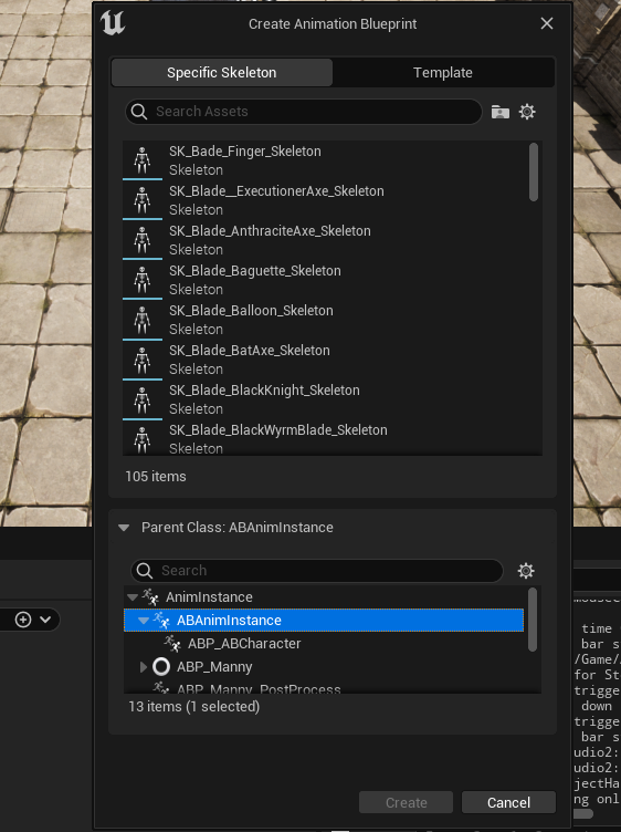 타겟할 스켈레톤과 만들었떤 Anim Instance를 지정해주고 제작하면된다.