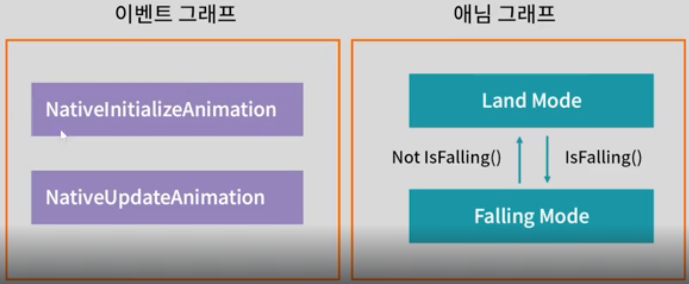 애니메이션 블루프린트는 이벤트 그래프 영역과 애님 그래프 영역으로 나뉜다.