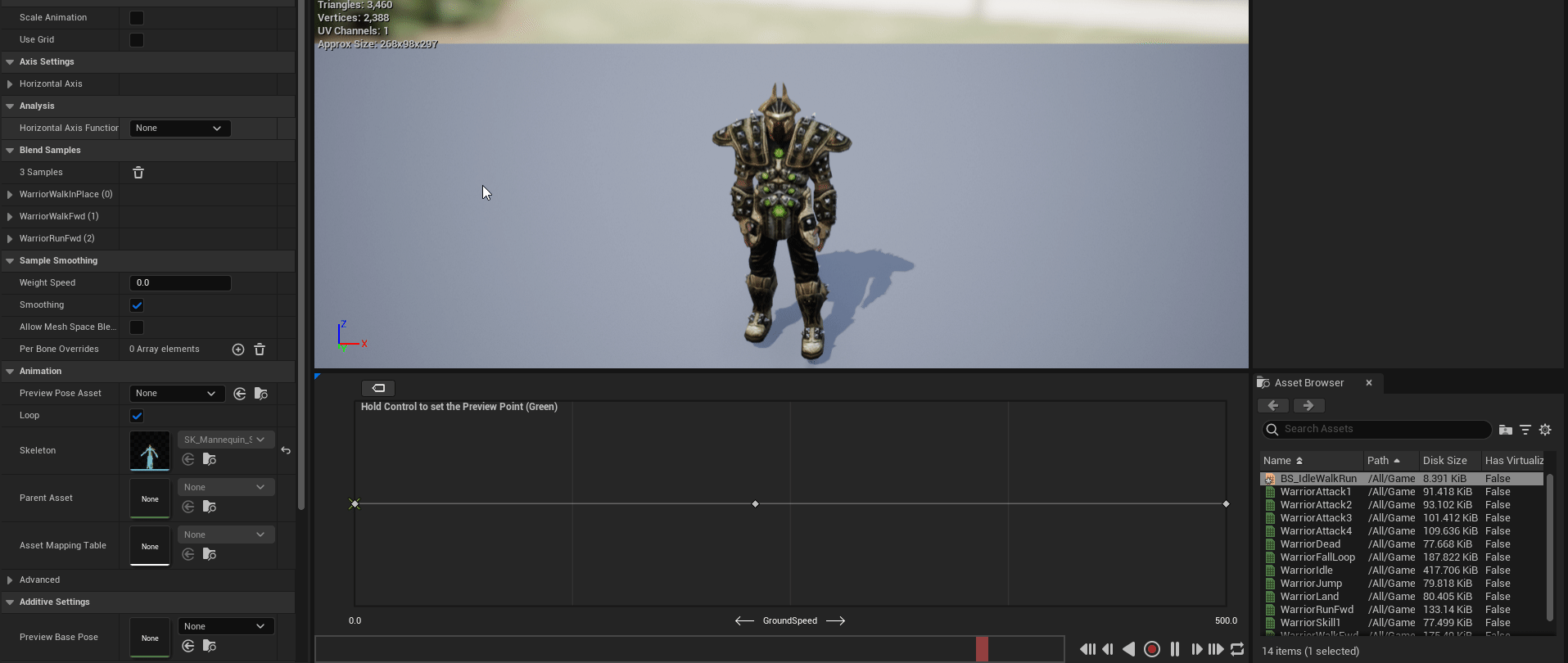 제작한 해당 블렌드 스페이스를 제작했던 로코모션 IdleWalkRun에 대입한다.