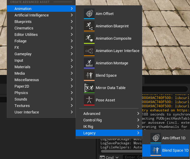 이동할때 움직임은 속도에 비례해서 애니메이션 속도가 변경되어야 자연스럽기 때문에 BlendSpace를 제작한다.