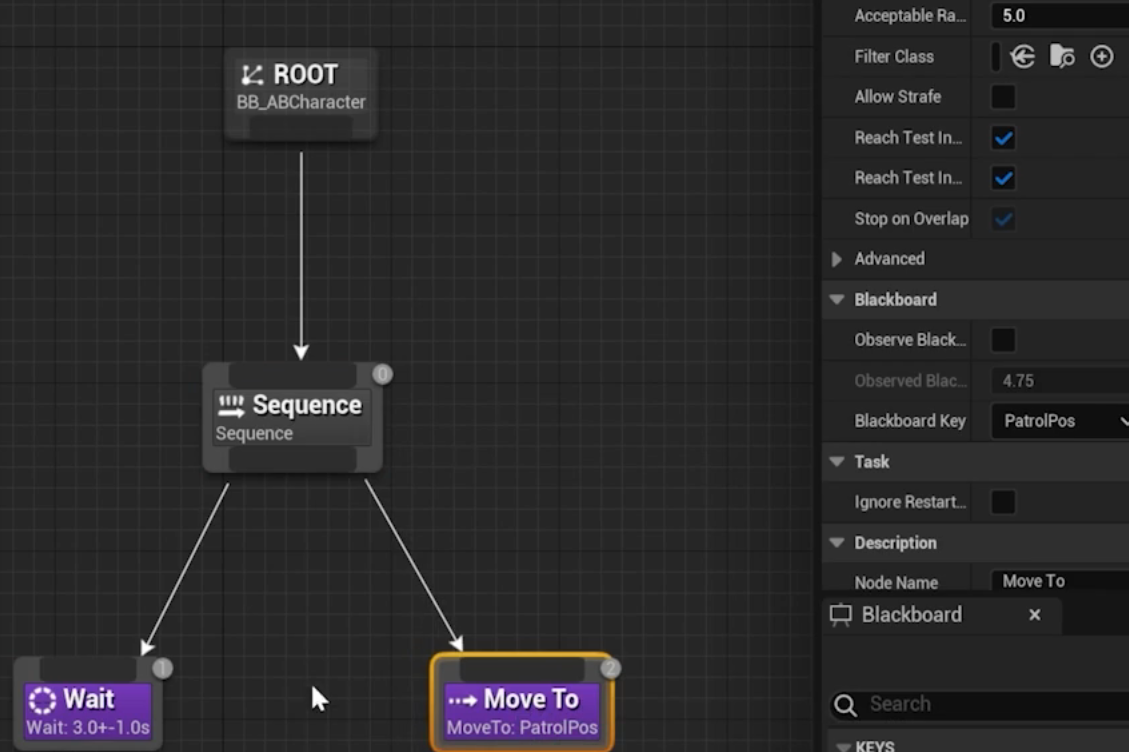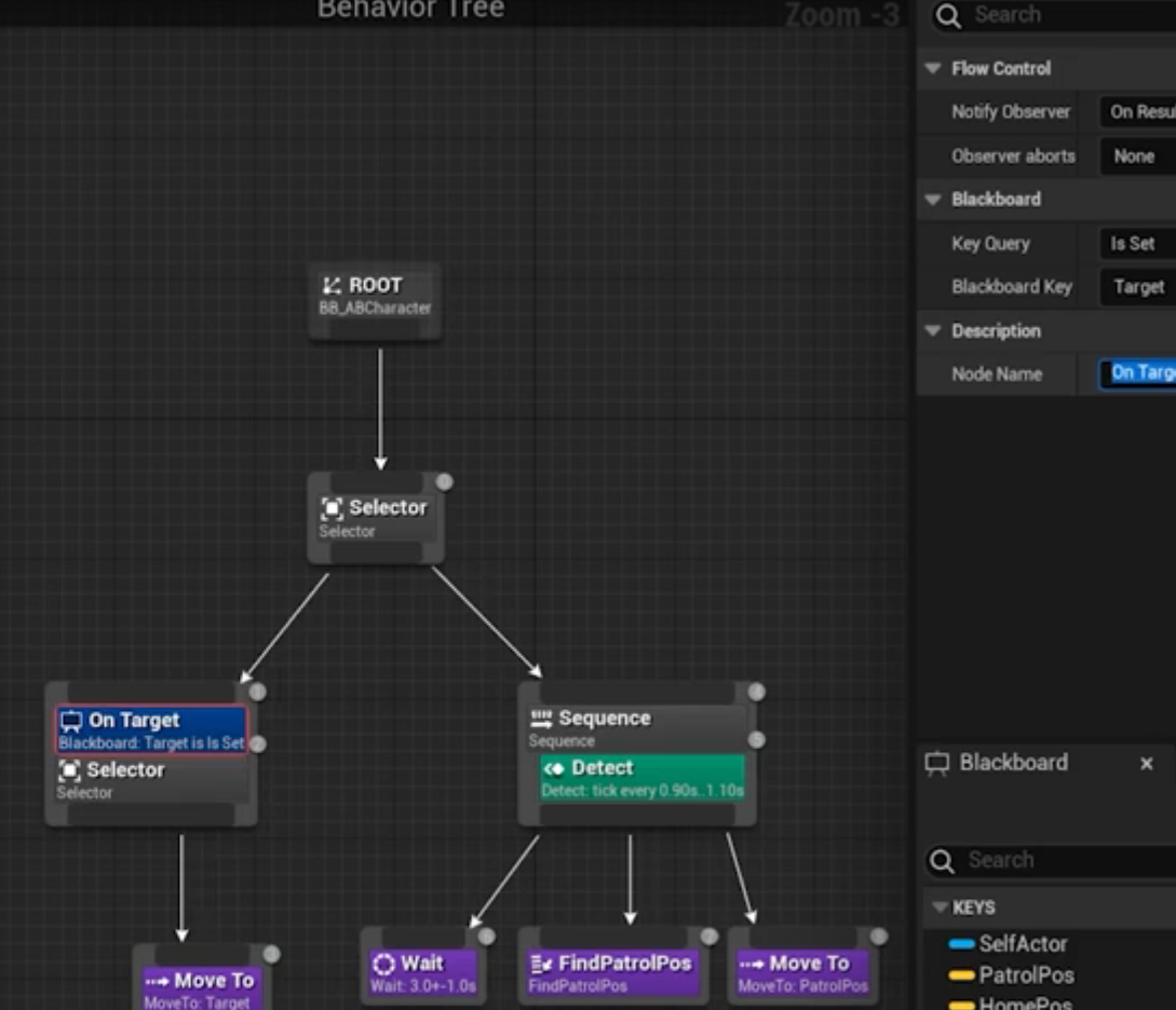 타겟을 찾는 기능까지 했고 이제 타겟이 있는경우 타겟을 향해 따라가도록 BT를 수정한다.