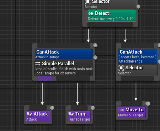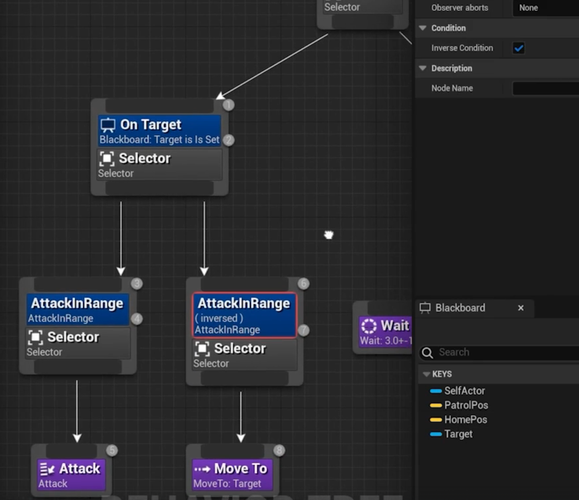 범위에 들어왔다면 Attack이란 태스크를 진행하고, InverseCondintion인 경우(범위 밖) 그냥 Move To 하도록 한다.