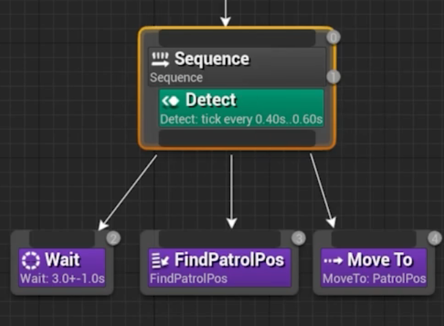 왼쪽 컴포짓에 Detect를 넣어서 타겟이 죽어서 못찾기 때문에 null이 되면 종료되도록 한다.
