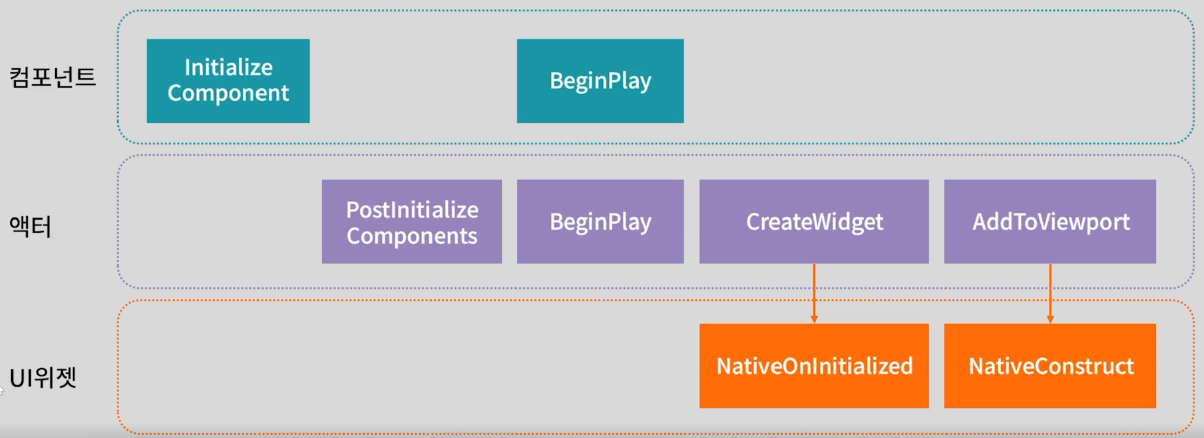 CreateWidget을 호출해서 제작하고 그럼 UI가 NativeOnInitialized 가 호출된다.