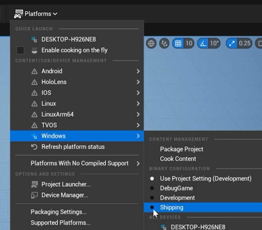 Shipping을 하면 가장 빠르고 용량이 작은 최종 결과물을 만들 수 있다.
