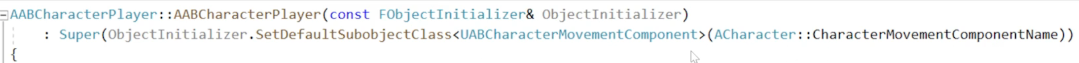 : Super(ObjectInitializer.SetDefaultSubobjectClass<UABCharacterMovementComponent>(ACharacter::CharacterMovementComponentName))