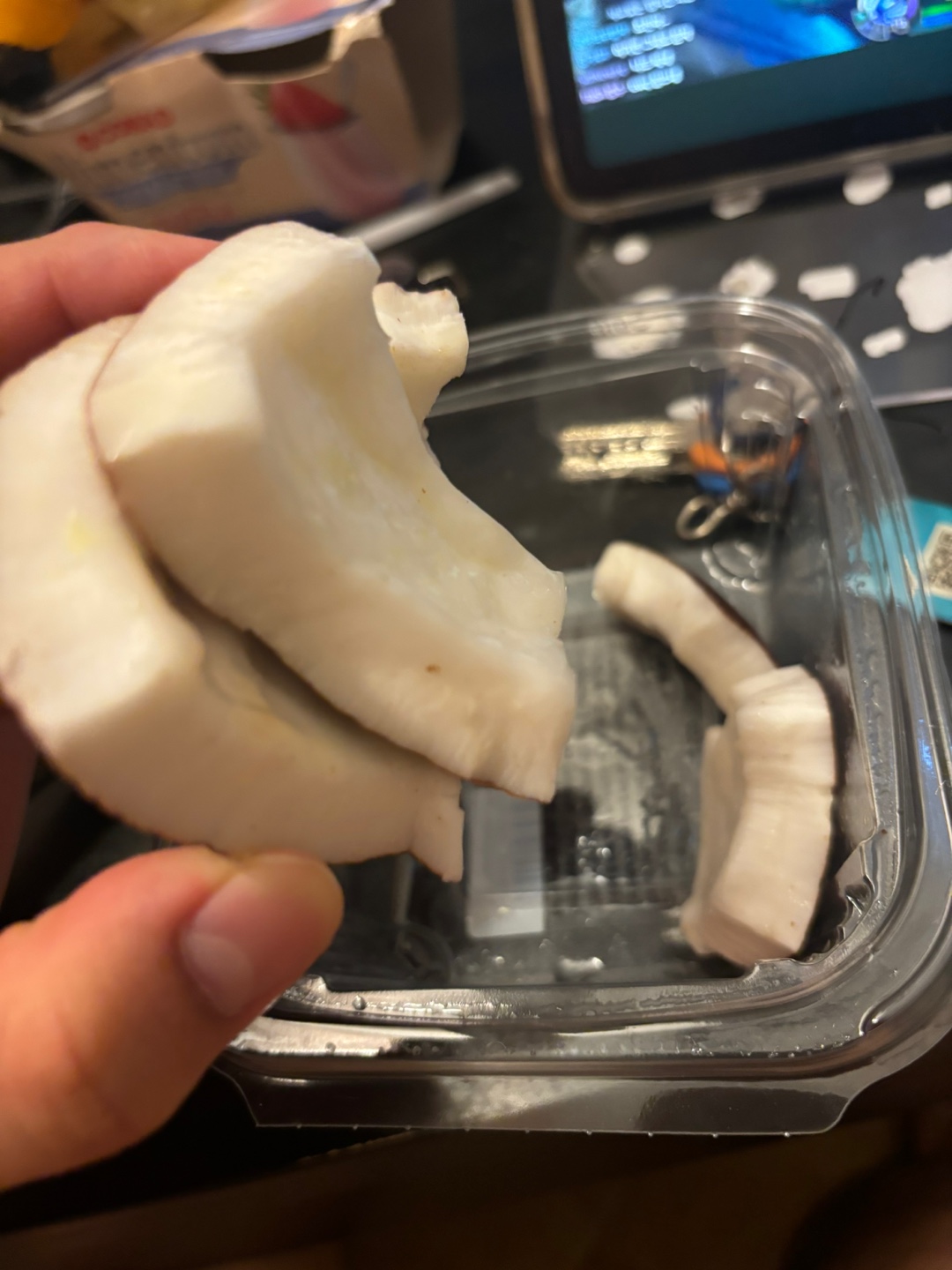 촉촉한 땅콩을 먹는데, 맛은 향긋한? 달달한 과일이라고 보시면 되요.