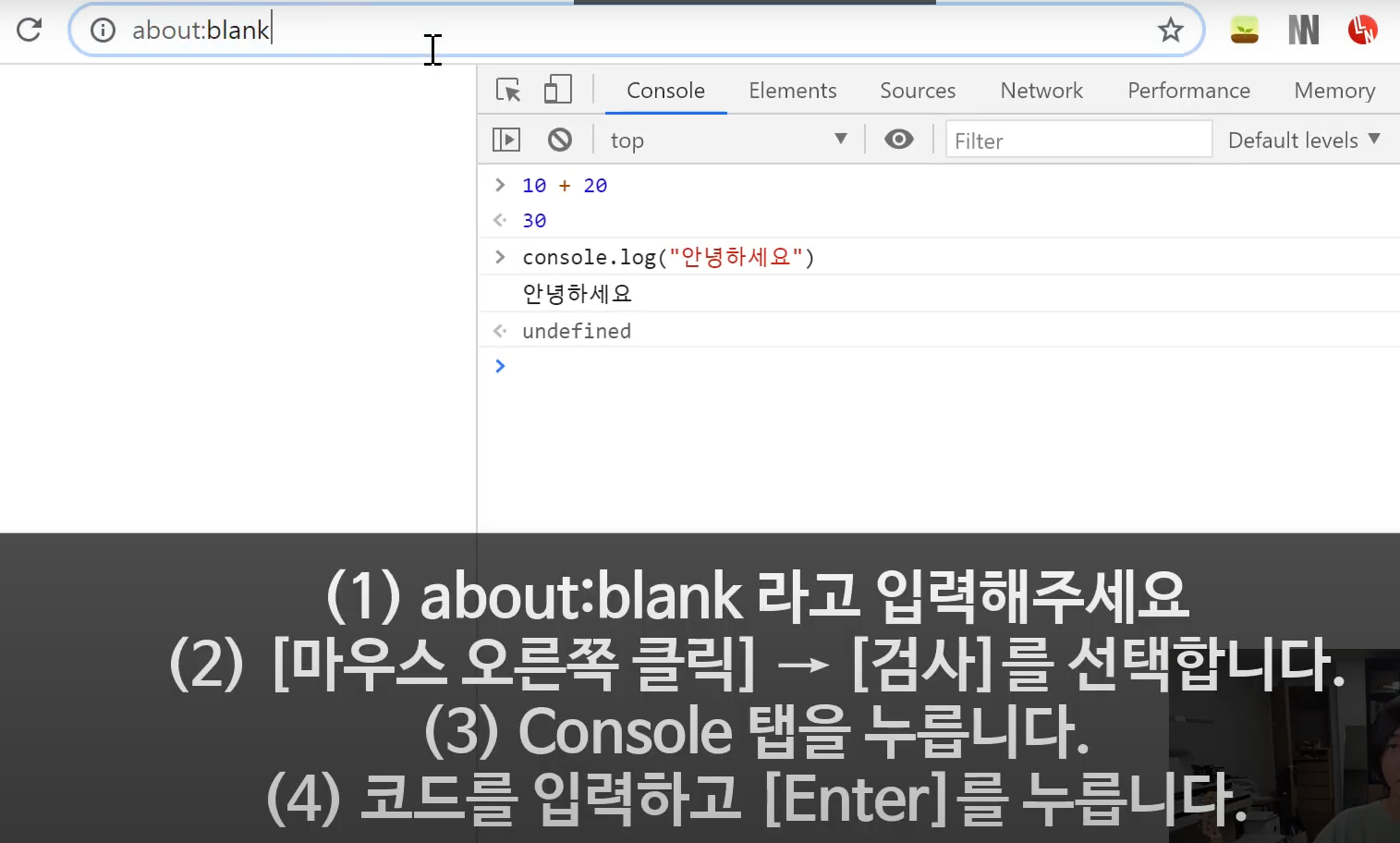 들어가서 주소에 about:blank 를 검색해서 빈 웹페이지를 쓰게 된다.