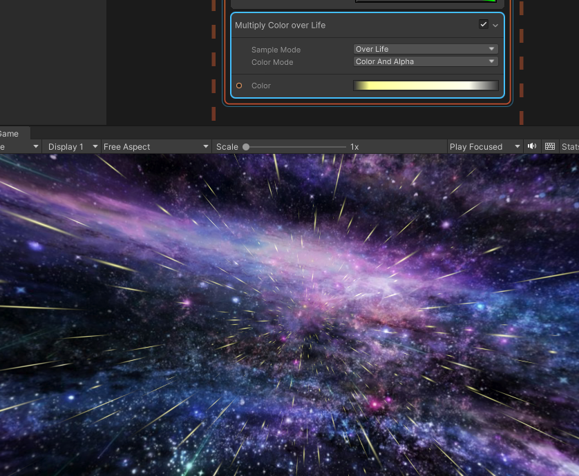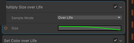 Set Color Over Life를 누르고 Inspector에서 Composition을 Multiply로 수정함.