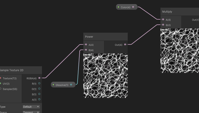 이미지의 정도를 넣기 위해서 Dissolve 값에 제곱을 한다.
