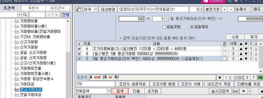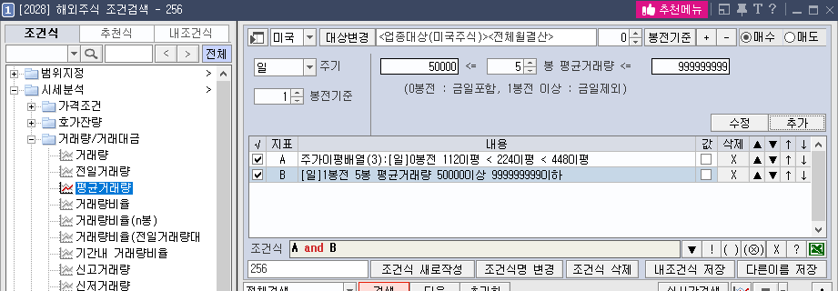 하루전 기준으로 최소한 5만주 이상은 거래가 되어야한다라는 조건을 추가한다.