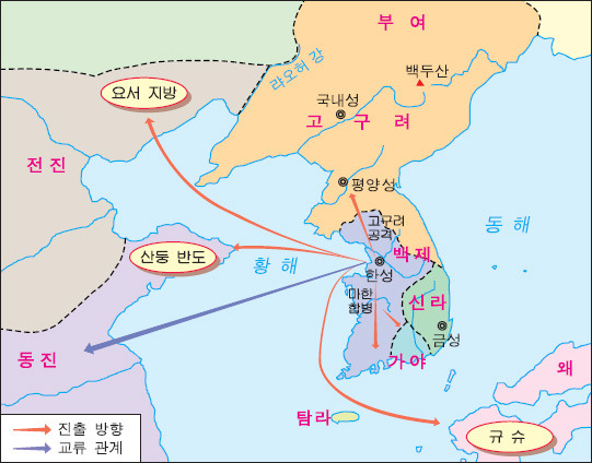마한 전체 병합, 고구려 공격, 칠지도, 요서지방, 산둥반도, 규슈 |